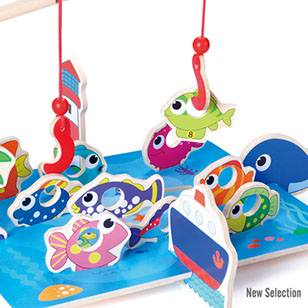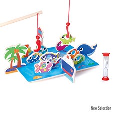 To start, fit the fishes and the marine objects to the base and start fishing! Sand timer is included, to mark the playing time! This game is made of wood.