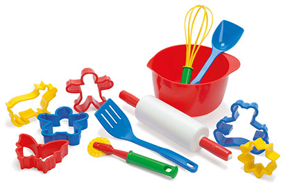 Learn to bake impressive cakes of dough, modelling clay or sand. The baking set invites to both indoor and outdoor play and learning. It helps strengthening the child’s imagination and fine motor control.