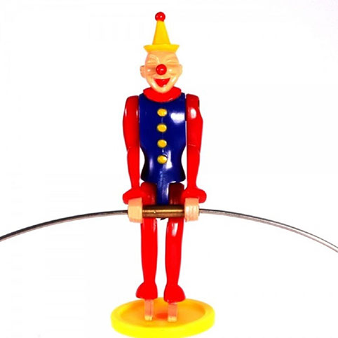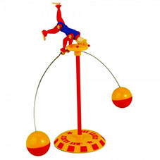 Unlike other balancing toys, SAM's arms, legs and balancing pole all move, allowing him to balance in all sorts of gravity-defying positions. He can balance on his head, heels, toes and even his nose! Once Circus Sam is balanced, give him a little turn and he will bob up and does as he goes round and round. This circus act is sure to delight all those who see it...so go on with the show! The game includes 1 Circus Sam, 1 Platform, 1 Pole, 1 Base and an Instructional booklet.