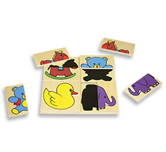 36 wooden pieces. You can place the halves of the cards in a vertical or horizontal, on the right or on the left, according to the shade.