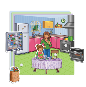 Each of the four play boards in this game features a different room. Attach each piece to its appropriate room (You can mix and match the pieces on the various play boards). The game includes 4 play boards of different rooms, 2 child figures and 26 pieces.