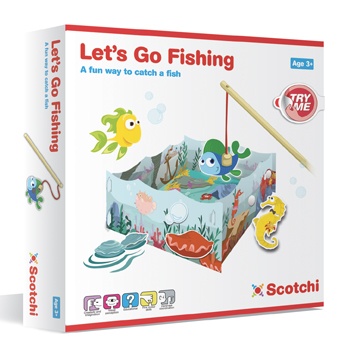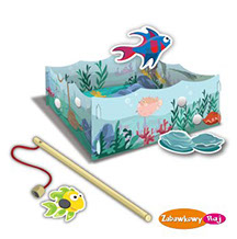The game develops fine motor skills and hand-eye coordination. You need to assemble the fish pool, add the marine characters and go fishing with the magnetic fishing rod. The game includes,1 fish pool base with panels, 2 side panels, 8 marine pieces, 12 magnetic fish and 1 wooden fishing rod.
