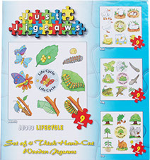 This set includes butterfly, duck, frog and tree. It follows their natural life cycle from beginning to end.