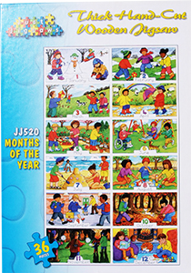 This puzzle shows the 12 months of the year. Each illustration depicts children's activities relating to the seasons, the weather and tradition.