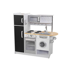 Our innovative KidKraft Pepperpot Kitchen will get young chefs interacting and having fun. With realistic burners, oven knobs that click and turn, appliance doors that open and a chalkboard on the front of the refrigerator, kids will have endless hours of fun letting their imaginations unfold. The sturdy design will ensure that it remains a vibrant part of playtime for years to come.