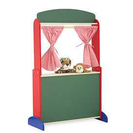 Create your own puppet show by using this drawable board. Let children use their imagination to create a puppet show of their own. Made of solid wood rubber with safe non-toxic colors. On the front there is a blackboard to write the time of the show!