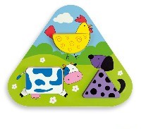 A triangular shaped puzzle with printed background according to the drawing of the piece to fit.