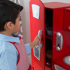 Young chefs are sure to love cooking up fun with our adorable KidKraft Red Vintage Play Kitchen! This vintage play kitchen has doors that open and close, knobs that click and turn and plenty of convenient storage space.
