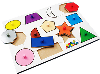 Easy learning for different shapes, as knowledge of what the shape looks like is needed to complete the puzzle. Made of wood.