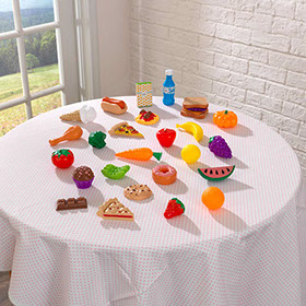 Τhe Play Food Set is perfect to use with any of our play kitchens or cookware. With so much variety, the creative combinations are limitless. How about a banana sandwich or an ice cream pizza? With sweets, veggies, fruit and more, kids will love exploring the culinary possibilities.