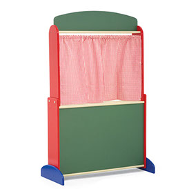 Create your own puppet show by using this drawable board. Let children use their imagination to create a puppet show of their own. Made of solid wood rubber with safe non-toxic colors. On the front there is a blackboard to write the time of the show!